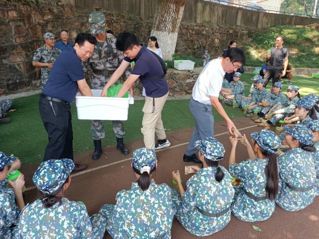 各位院领导,班导师,学工办辅导员老师为2021级本科新生送上清凉解渴的饮料和月饼,为他们扫除天气的闷热并提前送上中秋祝福,鼓励他们在军训生活中不断磨砺自我,磨砺青春,进一步理解军训中所蕴含的爱国主义教育,继承和发扬中国人民解放军的优良传统,树立民族自豪感。