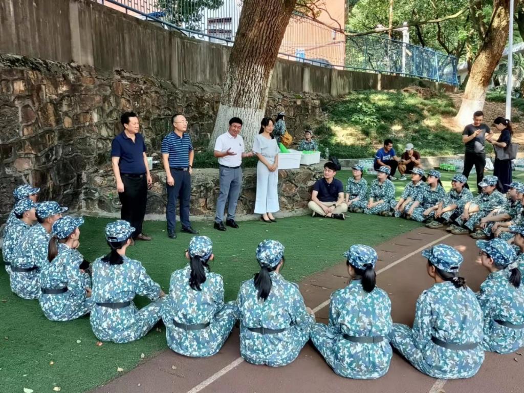最后,在欢声笑语中,领导们与同学们进行告别,并为同学们加油打气,“宝剑锋从磨砺出,梅花香自苦寒来”,希望同学们能够克服困难,磨练意志,圆满完成军训这开学第一课。
