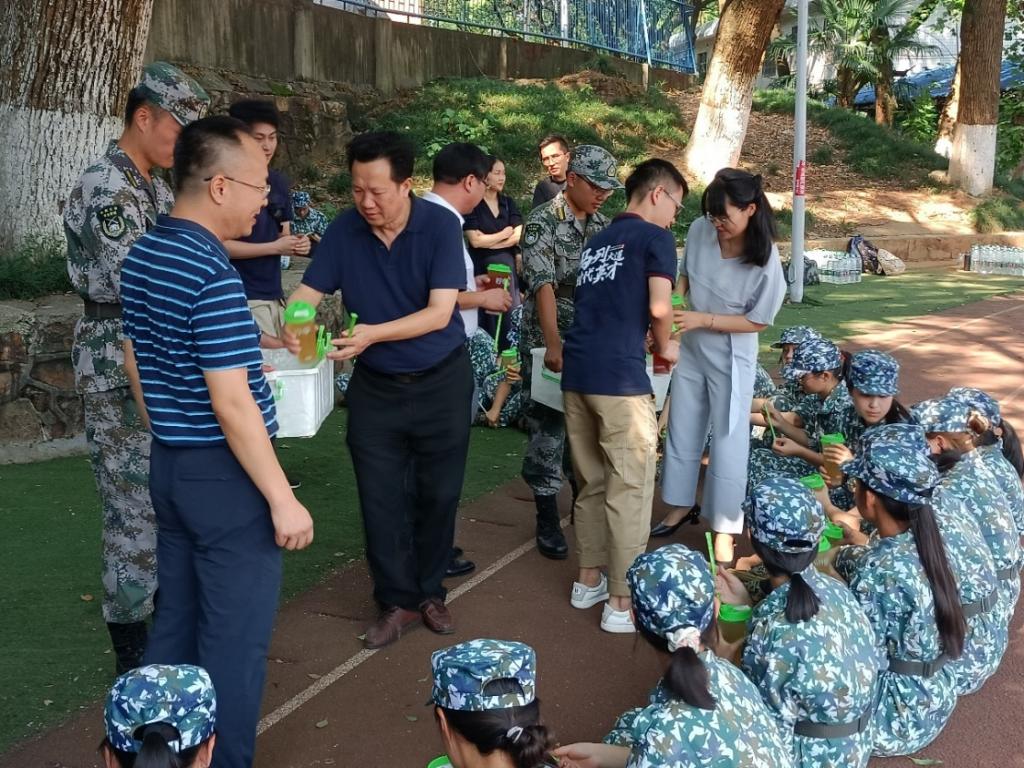 9月17日上午,公司党委书记王希俊,经理王翔,党委副书记杨雪宾,副经理曹清燕,新生班导师欧阳鹏,学工办主任肖艳玲,辅导员陈力瑞,辅导员叶尔波拉提前往军训场地,为伟德victor1946官网登录2021级本科新生在酷热的天气下送来“清凉”。