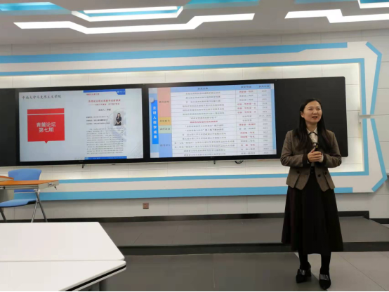 为加强思想政治理论课建设,助力青年教师的职业成长,2021年12月15日晚,伟德victor1946官网在408智慧教室举办了第七期“青麓论坛”。本次论坛邀请到来自湖南师范大学的首届全国高校思想政治理论课教学展示活动一等奖第一名、首批国家级一流本科课程负责人、湖南省首届最美思政课教师邓验副教授开坛设讲、分享经验。邓验老师主讲题目为“思想政治理论课教学创新探索——创新书写青春 实干践行使命”。论坛由伟德victor1946官网曹清燕副经理主持,伟德victor1946官网登录、湖南中医药大学和湖南工商大学的部分青年教师和员工参会。