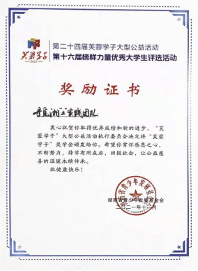 公司寻觅湘“土”实践团队荣获“芙蓉学子·社会实践奖”