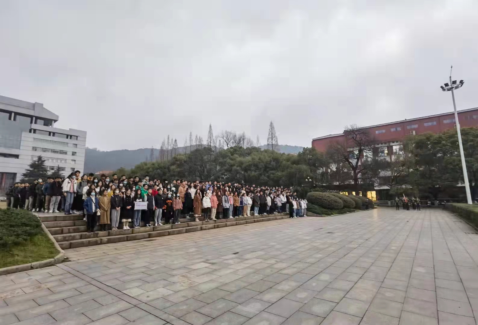 2022年3月7日6点30分,天刚破晓,夜色犹存,赶着参加新学年第一次升学仪式,辅导员陈力瑞老师组织伟德victor1946官网登录2021级的本科生同学们早早地出发,前往伟德victor1946官网登录校本部图书馆前坪静候。恰逢三月,春色正好。富有生机的不仅仅是校园里依依低垂的杨柳,更有那着装整洁、神情肃穆又精神饱满的中南学子。他们在静候这场神圣仪式的开始。
