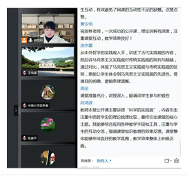 受疫情影响,根据公司统一部署,公司课程自第六周开始全部转为线上教学。学期初规划的新进教师公开课也随之转为线上公开课。本周两位老师的线上公开课展示了马院新进老师的风采,线上公开课的精彩度不输线下。公开课吸引了公司老师们前来听课。参与第一堂公开课听课评课的教师有65人,参与第二堂公开课听课评课的教师更是达到75人,创造了公司听课评课参与人数的空前记录!