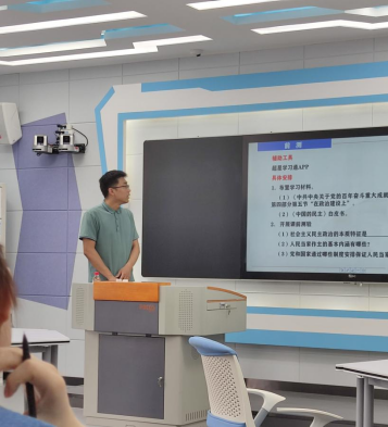 集体备课会包括主讲人说课和集中讨论两个环节。在说课环节,刘少博老师从民主的定义、民主的标准、全过程人民民主、中西方民主的对比等多个方面展开对发展社会主义民主政治专题的课堂教学。