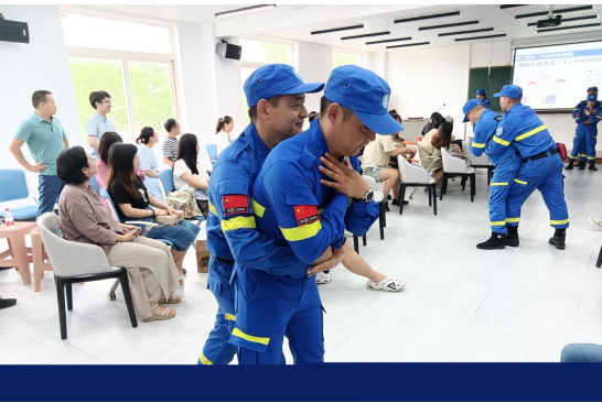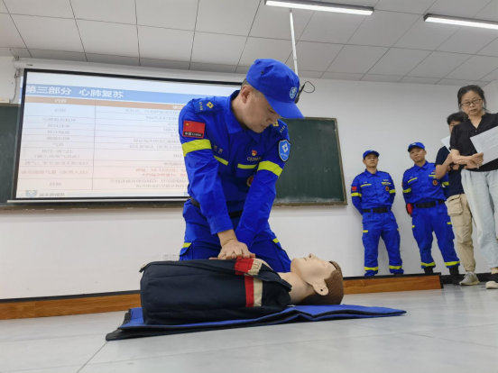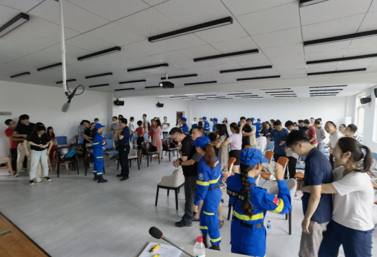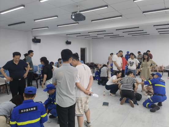 本次培训公司邀请长沙蓝天救援队为大家讲授防城市内涝、防溺水、气道异物梗阻、心肺复苏的自救互救知识与实操。长沙蓝天救援队是一支专业的应急救援队伍,诸多热心公益的志愿者经过专业的救援培训后,为省内外的应急救援、社会培训、活动保障等提供服务。