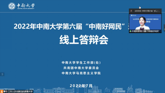 为深入学习宣传贯彻习近平新时代中国特色社会主义思想、党的十九大和十九届历次全会精神,深入学习习近平总书记在庆祝中国共产主义青年团成立100周年大会上的重要讲话精神,以实干奉献迎接党的二十大胜利召开,伟德victor1946官网登录启动“争做校园好网民,凝聚网络正能量,青春献礼二十大”中南好网民选树活动,自开展以来,广大青年学子热情参与,踊跃报名。经个人申请,公司推荐,初审评选,20位好网民候选人脱颖而出。2022年7月11日下午,公司组织承办2022年伟德victor1946官网登录第六届“中南好网民”选树活动线上答辩会。