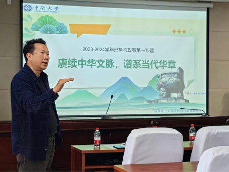 夏丹妮老师随后做形势与政策课程专题演示即高效课堂案例,就第一专题“赓续中华文脉,谱系当代华章”内容及要点进行详细说明,指出本专题主要讲解中华优秀传统文化,以及关于文化传承发展的问题,在ppt设计以及教案构思上,夏老师分享了自己的案例。