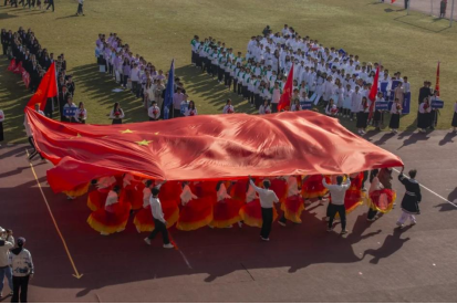 开幕式上,马院方阵伴着激累扬的旋律,踏着矫健的步伐,精神抖擞,意气风发地走在运动场上。他们手持红扇挥舞,飘逸的扇尾划出一阵阵波浪,一艘红船行驶在这红色浪潮中。队伍行至跑道中央,伴随着马院学子铿锵有力的口号声,“马院姓马,在马言马!”,一面巨大的国旗飘过方阵上方,彰显了马院学子传承红色基因,谱写时新篇章的坚定决心。公司的广播操队伍也同样整齐划一,展现出马院学子的青春朝气!在大家的共同努力下,我们成功斩获了团体表演项目广播操一等奖、开幕式观众组织奖、开幕式入场式组织优秀奖三大团体奖项,在校运会中取得头彩,开了个好头。