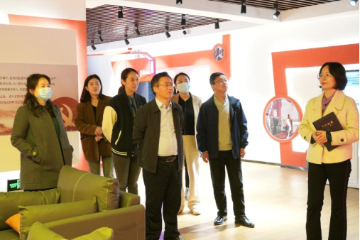来宾一行首先参观考察公司新建的大思政课实训中心及大思政课实践教育平台。郭鹏飞主任向来宾介绍公司实验室的建设情况。双方观看习近平考察湖南专题虚拟现实展览馆,就大思政实训中心的虚拟仿真教学功能,虚拟现实备课系统展开深入交流,在讲解员协助下体验图书长廊、AR/VR虚拟现实教学功能和效果。