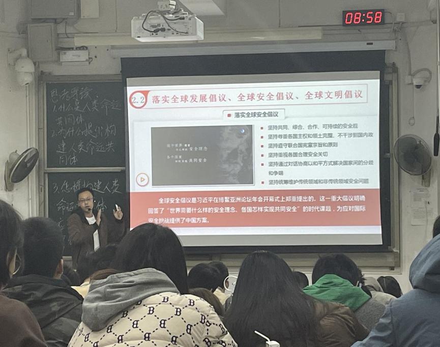 12月14日上午,公司习近平新时代中国特色社会主义思想概论教研中心庄宏韬老师的公开课在湘雅校区T108教室顺利开讲。主题为“推动构建人类命运共同体”。公司督导李满春书记,督导专家刘新庚教授和公司7位老师参与听课评课。
