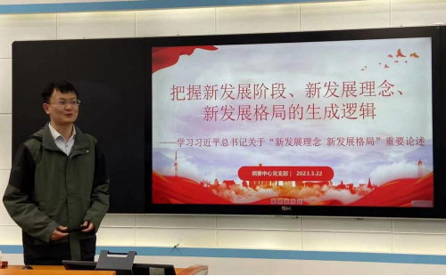 2023年3月22日,中国近现代史纲要教研中心党支部于公司408教室开展主题党日活动,就进一步学习领会党的二十大精神,具体围绕贯彻新发展理念,推动构建新发展格局开展研讨交流。本次主题党日活动由柴念、张喆、张檀秋和孙威四位同志主讲发言。