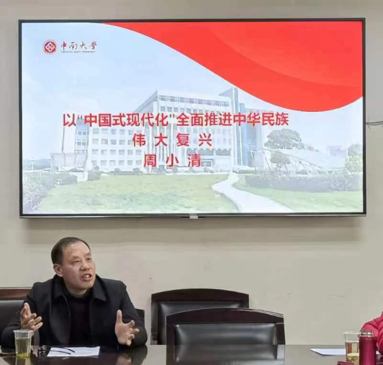 周小清副经理关于“以中国式现代化”全面推进中华民族复兴的解读报告,更是从历史和文化的视角给老同志们以思想启迪。他从大历史观出发,讲述了现代化在近代中国的起步、发展及其最终结果。他熟悉历史演变进程,从地主阶级进行器物现代化的“洋务运动”,到资产阶级试图变革社会制度的 “维新梦”和“共和梦”,都是片面的局部性变革,最终都难免失败。从上个世纪50年代到70年代,我党确立了实现四个现代化的战略目标;20世纪80年代邓小平提出“三步走”战略规划;党的十五大提出了现代化建设“新三步走”的战略并首次提出“两个一百年”奋斗目标。随着第一个百年奋斗目标的实现,习近平总书记在二十大报告中指出,“从现在起,中国共产党的中心任务就是团结带领全国各族人民全面建成社会主义现代化强国、实现第二个百年奋斗目标,以中国式现代化全面推进中华民族伟大复兴。”周小清副经理以唯物辩证法的观点解读了“中国式现代化,是中国共产党领导的社会主义现代化,既有各国现代化的共同特征,更有基于自己国情的中国特色。”他从现代化的共性与个性、理论与实践的辩证关系中,阐释了“中国式现代化”的五个特征,其中对中国式现代化是全体人民共同富裕的现代化、中国式现代化是走和平道路的现代做了重点阐述。批判了西方现代化的原始积累过程充满了血腥和暴力;而中国式现代化建设是在没有公式、没有模式的前提下,依靠自身力量发展起来的现代化。中国式现代化为解决人类问题贡献了“中国智慧”,提供了“中国方案”。
