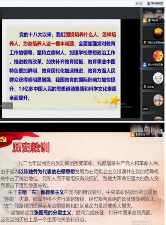 听完两位教授的授课后,党员们纷纷表示,讲座结合实际、内容丰富翔实,鼓舞人心、催人奋进,听后深感使命在肩。作为新时代的马院人,将以党的十九届六中全会精神为指引,用最大的热情投身本职工作,以最大的工作成效赢得全校广大师生的认可。