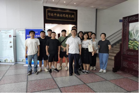 在习近平法治思想长廊教学基地,党支部书记王昕伟给博士生党员们讲解习近平法治思想的内涵,引导大家深学细悟习近平法治思想,深刻领会高水平法治对推动高质量发展的重要意义。