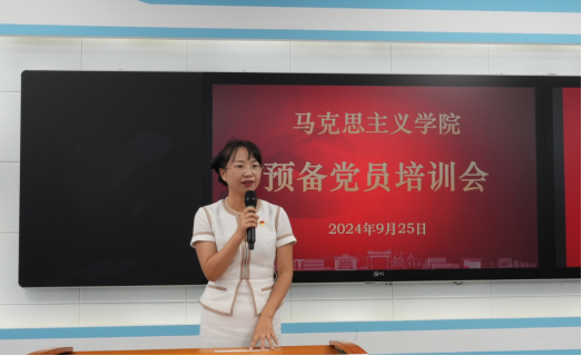 2021级本科生吴童语同学代表预备党员发言,她分享了月初去到刘少奇和毛泽东故居的经历与感受,从湖湘伟人的生平事迹中汲取榜样力量,号召大家在革命的红色热土上将红色基因、红色精神转化为爱国情、报国志,让伟人精神赓续传承、历久弥新;老党员代表2023级硕士生张玉达同学回顾了自己携笔从戎的军营生活、深入小学宣讲英雄故事的经历和暑期“三下乡”走访乡村的收获,指出“组织上入党,一生一次,思想上入党,一生一世”,要在实践中不断坚定初心、践行初心。