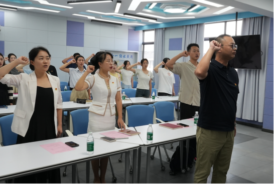 9月25日下午,公司在408智慧教室举行预备党员入党宣誓仪式。公司党委副书记童卡娜、学工办主任兼硕士生第一党支部书记肖艳玲、硕士生第二党支部书记赵巍、硕士生第三党支部书记库都斯·克依木,老党员代表及2023年下半年和2024年上半年发展的预备党员参加仪式。本次仪式由组织员龚艳主持。