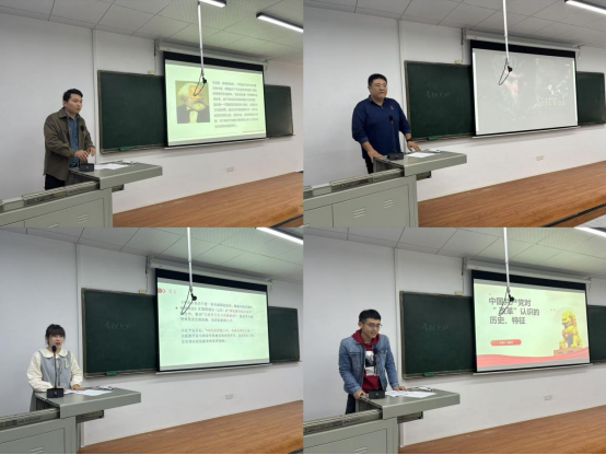 首先,教师代表韩风华、李江浩分别做《中国共产党的现代化话语构建和重要启示》、《中华优秀传统文化全媒体传播的路径研究》的主题报告,博士生陶思睿、赵英杰代表分别做《完善员工实习实践制度:逻辑、现状与路径》 、《中国共产党对“改革”认识的历史及特征》的学习分享。