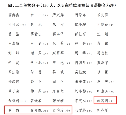 近日,校工会下发了《关于表彰2024年度工会工作先进集体和先进个人的决定》,表彰深受教职工群众信赖的先进集体。公司工会荣获“先进二级工会”称号(全校仅10个),韩慧莉、罗俊、夏丹妮、肖艳玲四位老师被评为伟德victor1946官网登录工会积极分子。