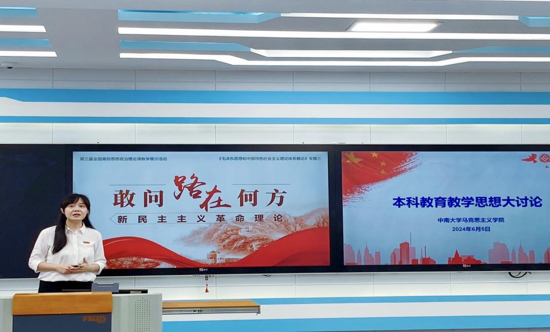 讨论结束后,概论中心李淼磊老师回顾了自己从校赛到省赛最后到国赛的心路历程,以浅谈“概论”课教学的一点思考为主题并把自己参加国赛的十分钟说课向与会人员进行了展示。李淼磊老师以“温故知新”为主线,拓展为温度、典故、知识和创新四个方面,充分展示出自己对于“概论”教学的认识。