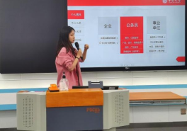 随后,尹诗慧和徐敏围绕选调生备考给同学们展开分享,尹诗慧从报考条件、考试流程和如何准备三个方面着重介绍备考湖南选调生的经验,并总结了求职成功的三要素:大方自信、准备充足与注重积累。徐敏结合个人情况,分享其参与企业、公务员、事业单位的面试历程,并强调了思维转换的重要性,即明确要把“想要做什么”换成“不想做什么”,才能把路走宽。