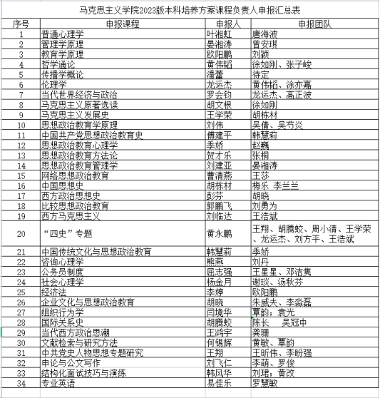 根据本科生院《关于做好2023版本科人才培养方案修订工作的通知》要求,经过个人/团队申报,公司遴选,本科人才培养方案工作小组审议,党政联席会议审议通过,拟定34位老师为2023版本科人才培养方案专业课程负责人/团队,具体情况如下:
