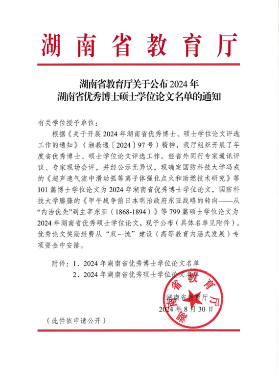 喜报!公司2篇硕士论文获评2024年度湖南省优秀硕士学位论文